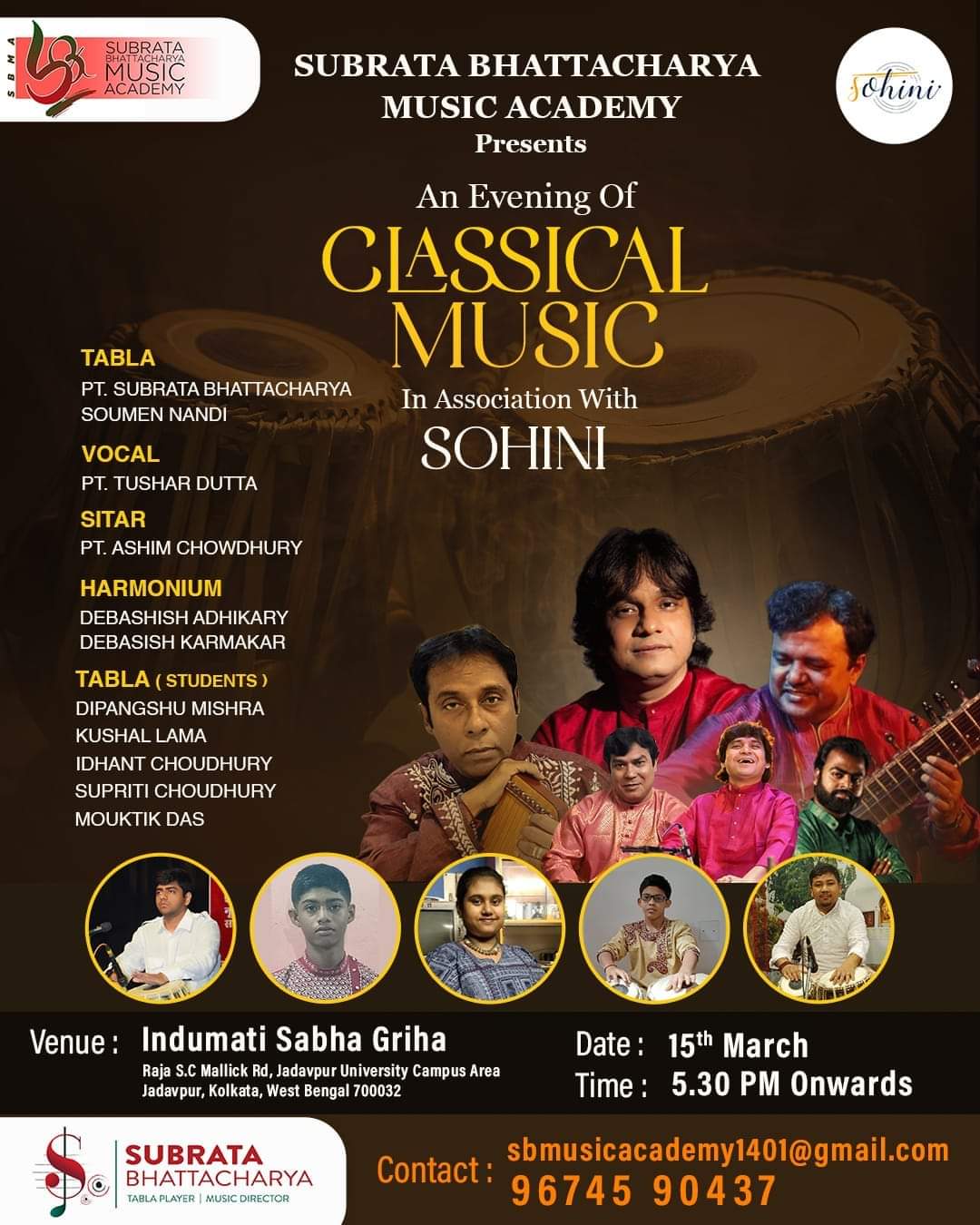 An Evening of Classical Music Presented by Subrata Bhattacharya Music Academy. In Association with Sohini.